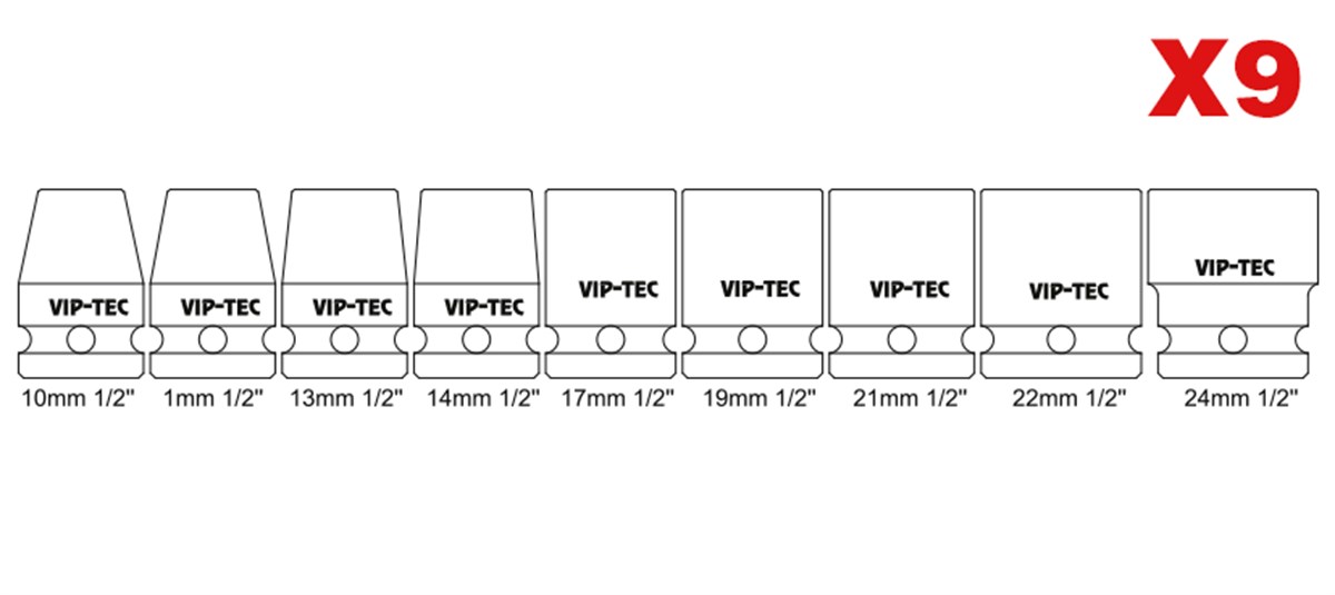 Vip-Tec 1/2'' Havalı Lokma Anahtar Takımı 9 Parça Vt114147