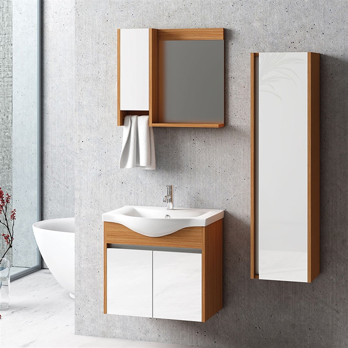 Nplus Logan 65 cm Banyo Dolabı Beyaz/M.Teak