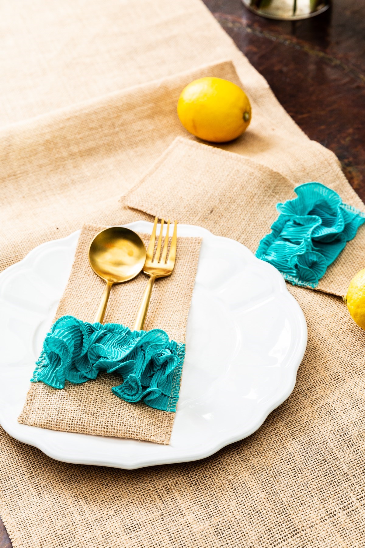 El emeği olduğu için her bir ürünümüz sizlere özel olarak üretilecektir. Kumaşlarımız % 100 doğa ile uyumlu olup karbon ayak izi bırakmadan üretilmiştir. Resimde görünen diğer objeler fiyata dahil değildir( peçetelik,tabak ve servis takımı ) amerikan servisi