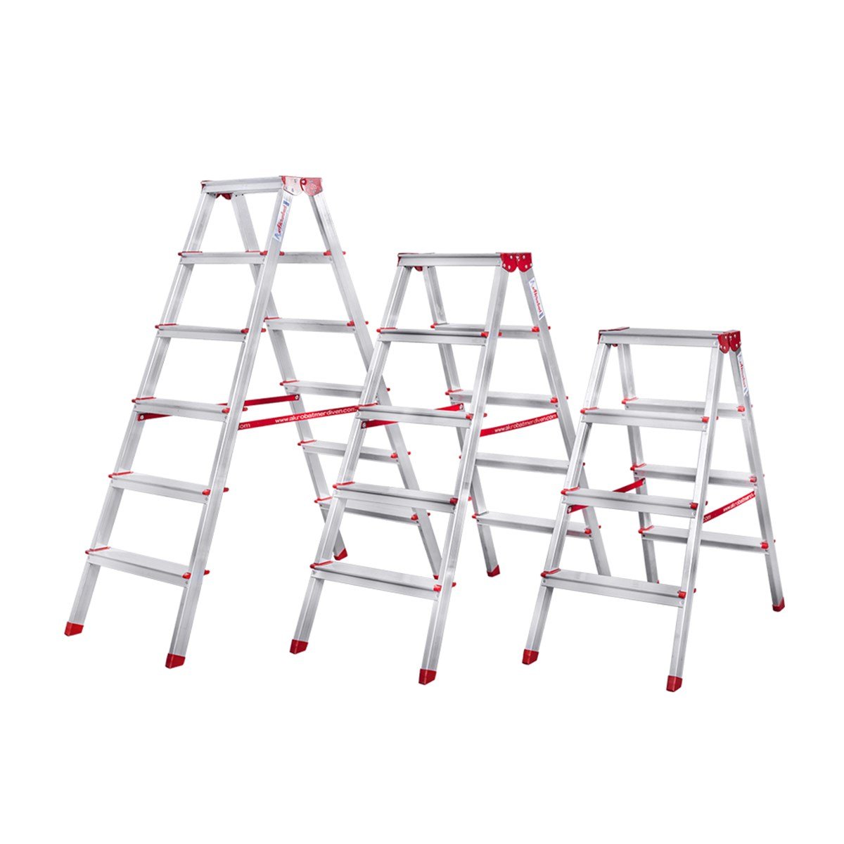 Çift Çıkışlı Merdivenler, rahat çalışmaya olanak veren geniş basamaklarıyla, hafif, pratik ve sağlamdır. Hobi ve profesyonel kullanıma uygundur.