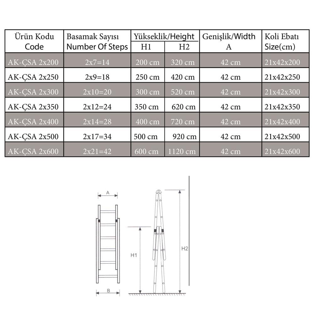 merdivendir. Çift sürgülü tasarımı, merdivenin her iki parçasının da ayrı ayrı uzatılabilmesine imkan verir, böylece farklı yüksekliklerde esnek bir kullanım sağlar. Hem profesyonel