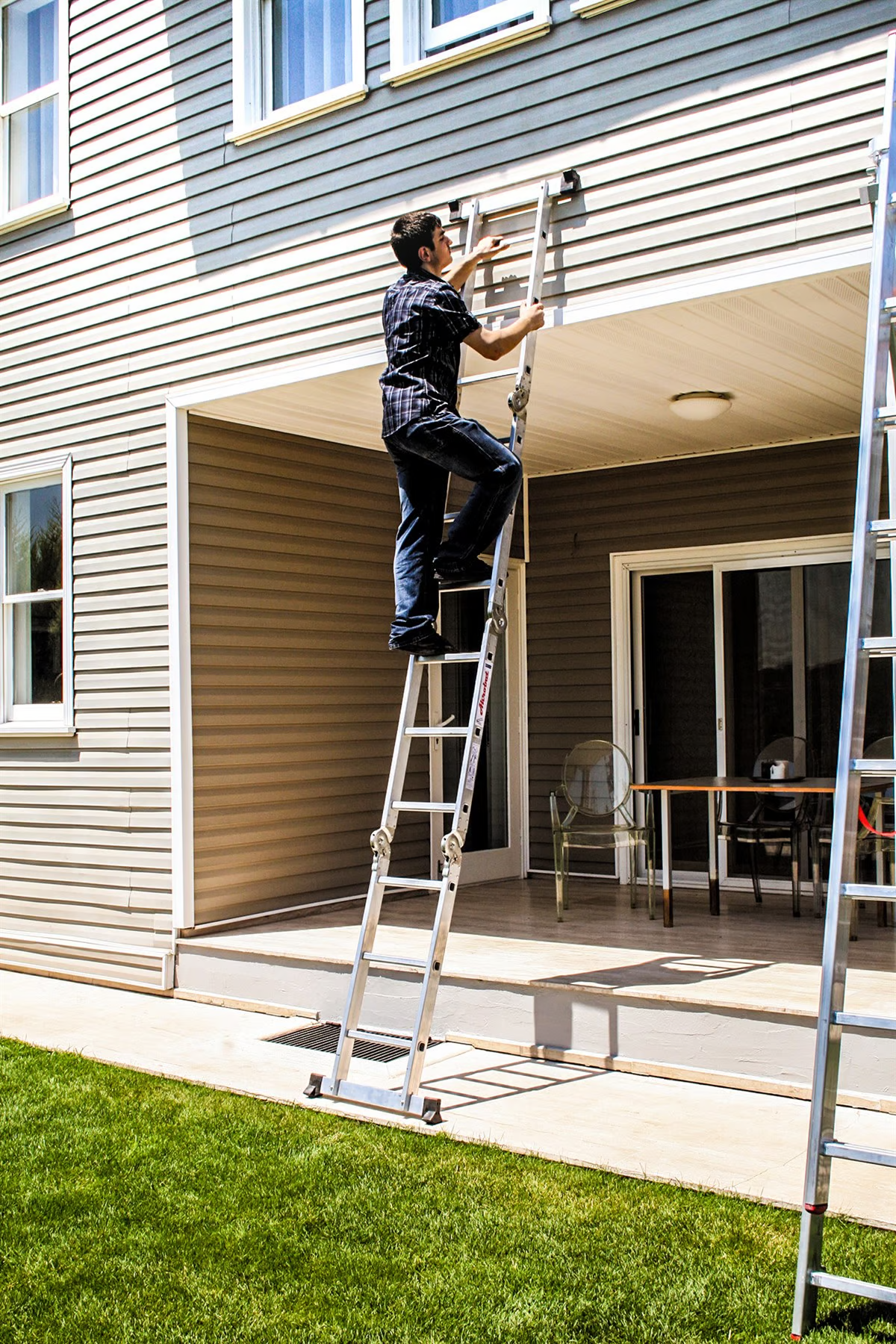 Akrobat merdivenler özel mafsal-kilit sistemleri sayesinde çok maksatlı olarak kullanılabilir.