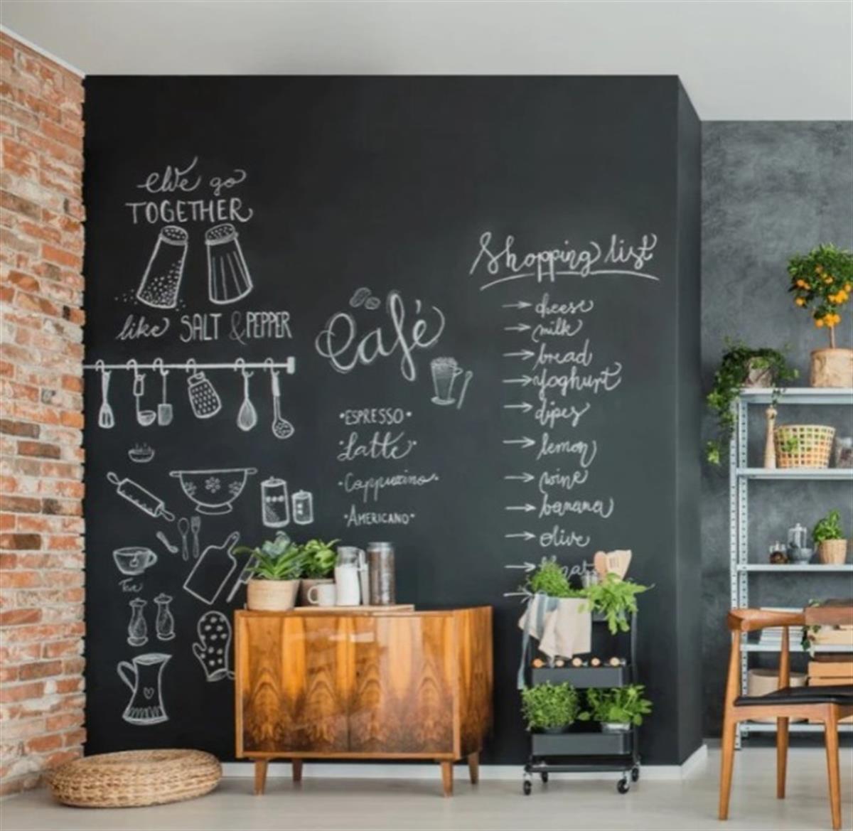 Aquacool Trend Chalkboard Paint (Kara Tahta Boyası) ile dilediğiniz yüzeyi kara tahta haline çevirebilir, kuruduktan sonra da tebeşirle dilediğiniz gibi süsleyebilirsiniz.