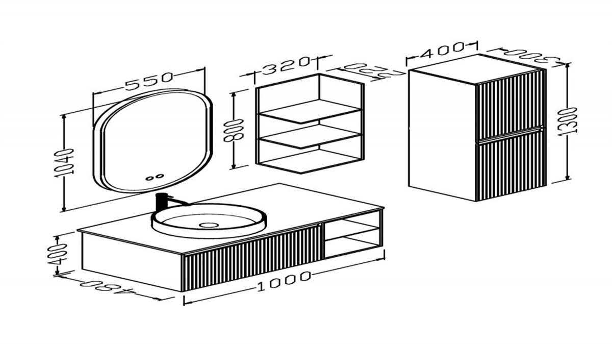 Üst raf modül: En 32 cm Derinlik 22 cm Yükseklik 80 cm