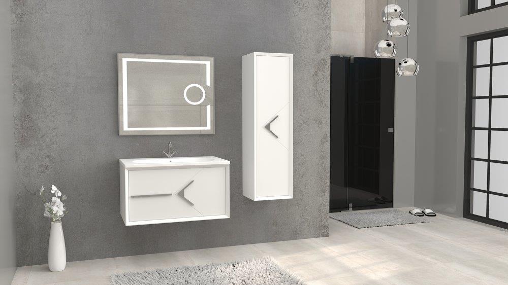 80 cm banyo dolabı ( Alt modül, Lavabo, ve Üst ayna modülü olarak 3 parçadan oluşur )