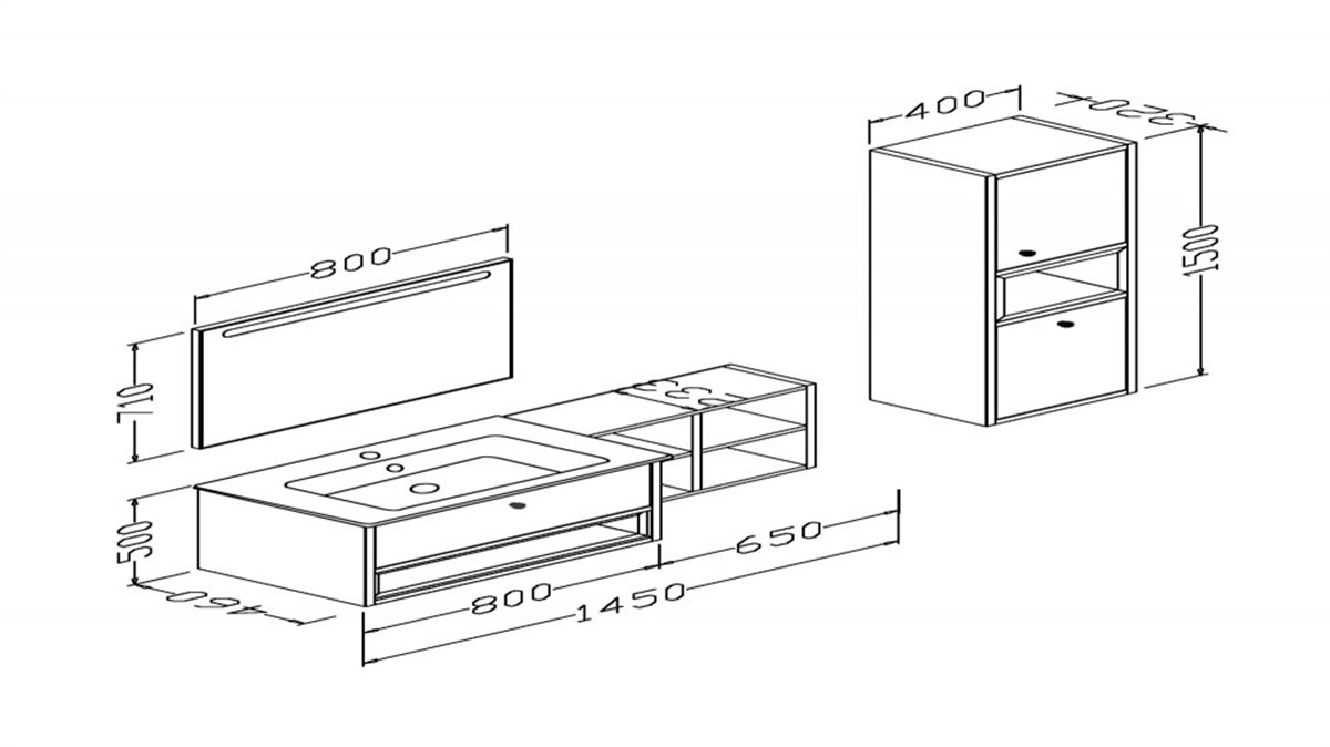 Aquanil Espero 145 Cm Siyah Lavabolu Banyo Dolabı - Antrasit/dorado