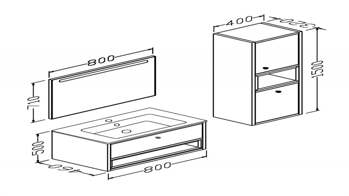 Üst ayna modül: En 80 cm Yükseklik 71 cm