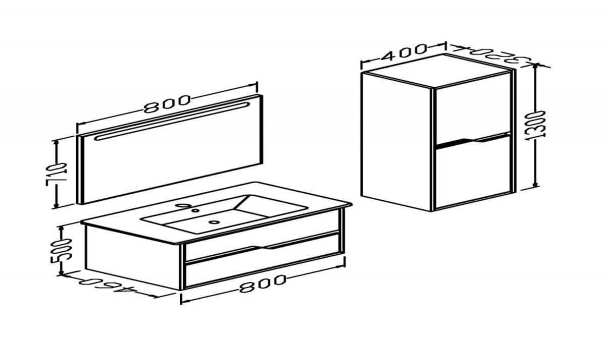 Üst ayna modül: En 80 cm Yükseklik 71 cm