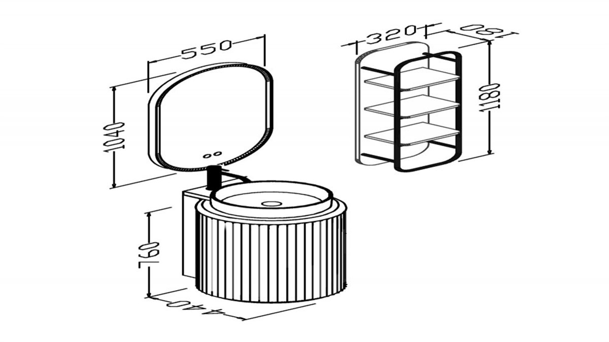 Üst ayna modül: En 55 cm Yükseklik 104 cm