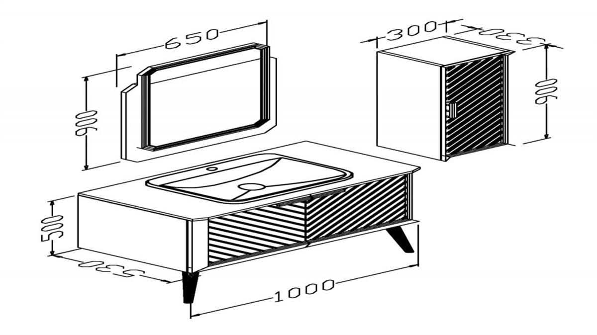 100 cm Banyo Dolabı ( Alt modül, Lavabo, ve Üst ayna modülü olarak 3 parçadan oluşur )