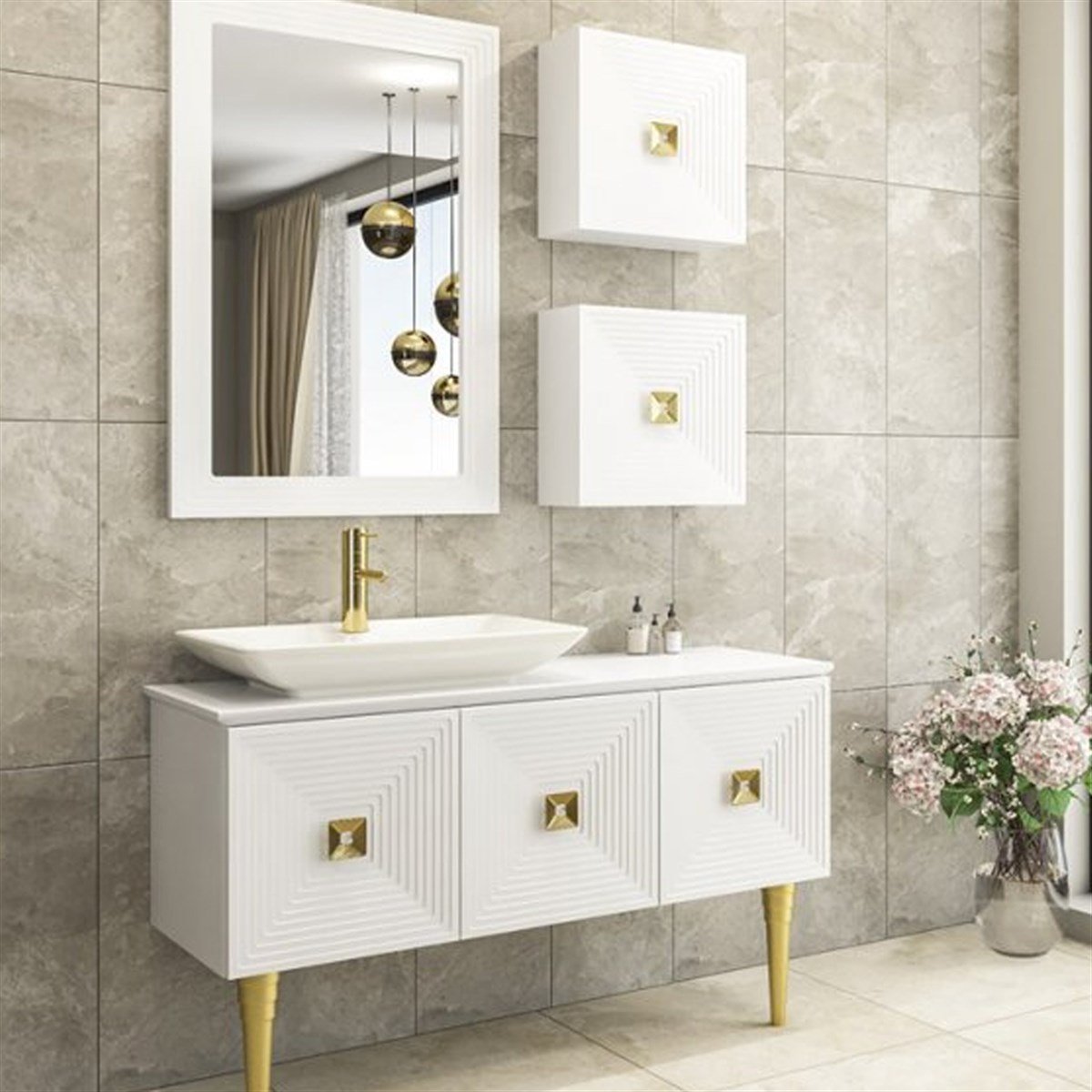 120 cm Banyo Dolabı ( Alt modül, Lavabo, ve Üst ayna modülü olarak 5 parçadan oluşur )