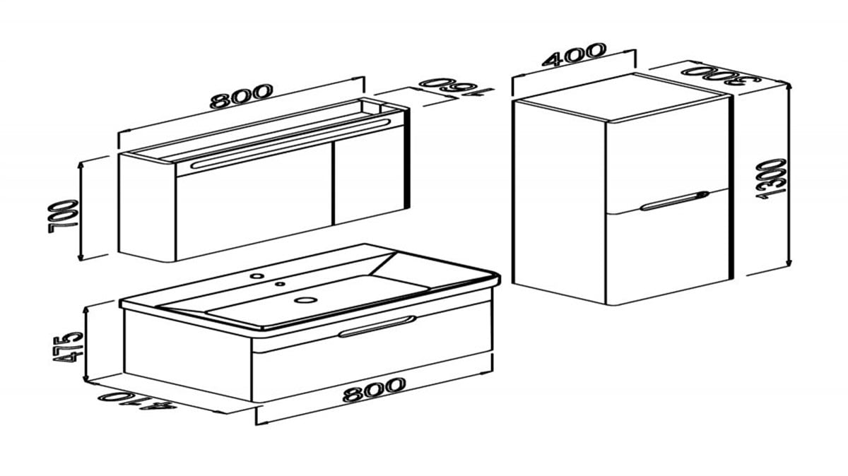Aquanil Olimpia 80 Cm Banyo Dolabı (aynalı Led Dolap) - Antrasit/beyaz