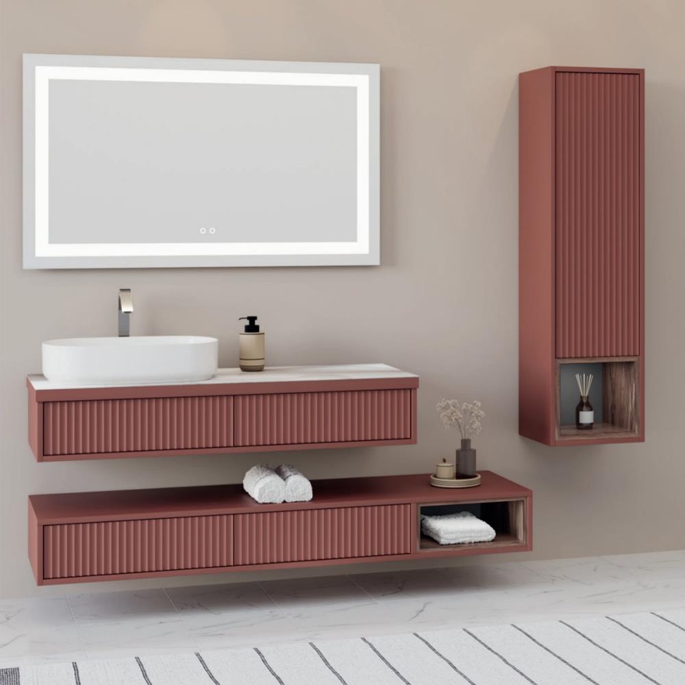 Modern ve Şık Tasarım: Bordo ve Kaman ceviz renkleriyle banyonuza estetik bir görünüm kazandırır.