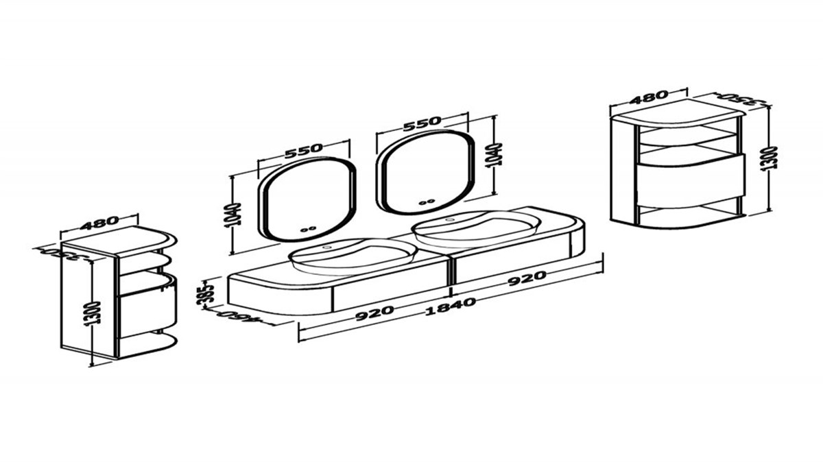 Üst ayna modül: En 55 cm Yükseklik 104 cm