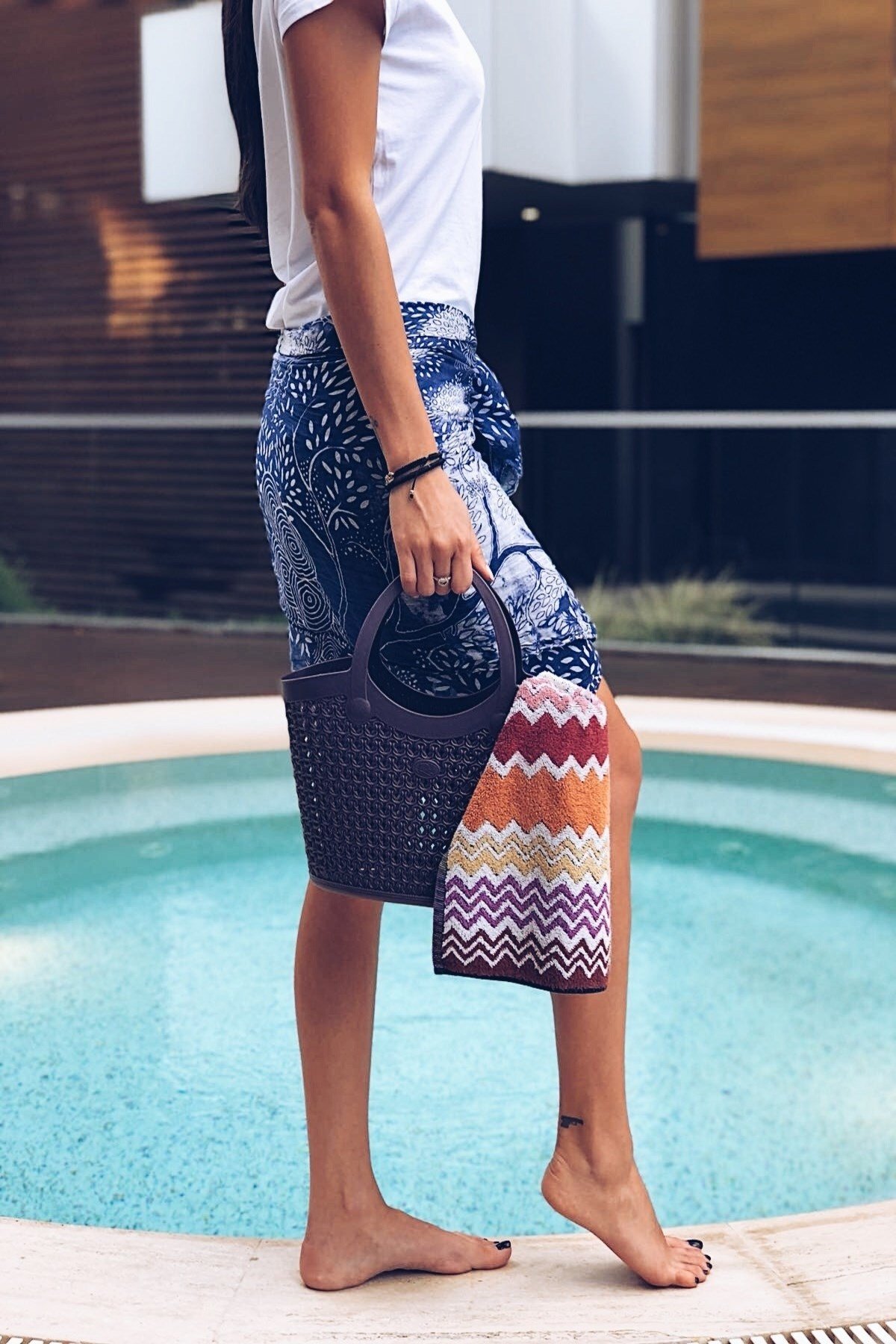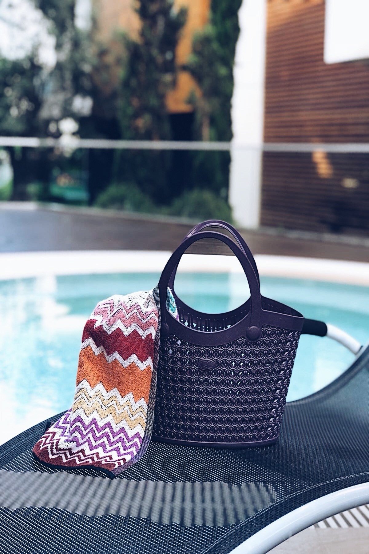 Plajlarda Rahatlıklı Kullanabileceğiniz Örgü Desenli Plastik Plaj Çantası Şıklığınıza Şık Katacak.
