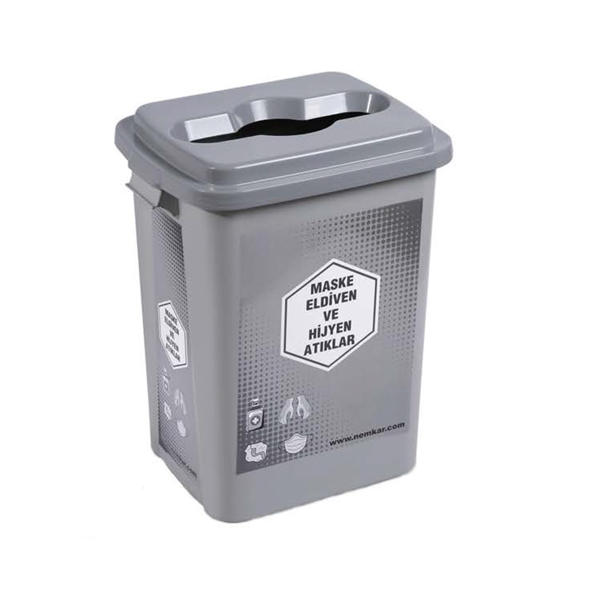 Sadece Kulanılmış Maske, Eldiven ve Kişisel Hijyen Atıklar için etiketli olarak hazırlanmış 70 L kapasiteli atık kovasıdır.