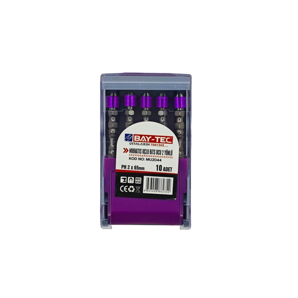 Bay-Tec Mıknatıs Uçlu Çift Yönlü Bits Uç PH2x65 mm (MU2044), vidalama işlemlerinizde işinizi kolaylaştıran güvenilir bir çözümdür. Çift yönlü tasarımı ve güçlü manyetik yapısı