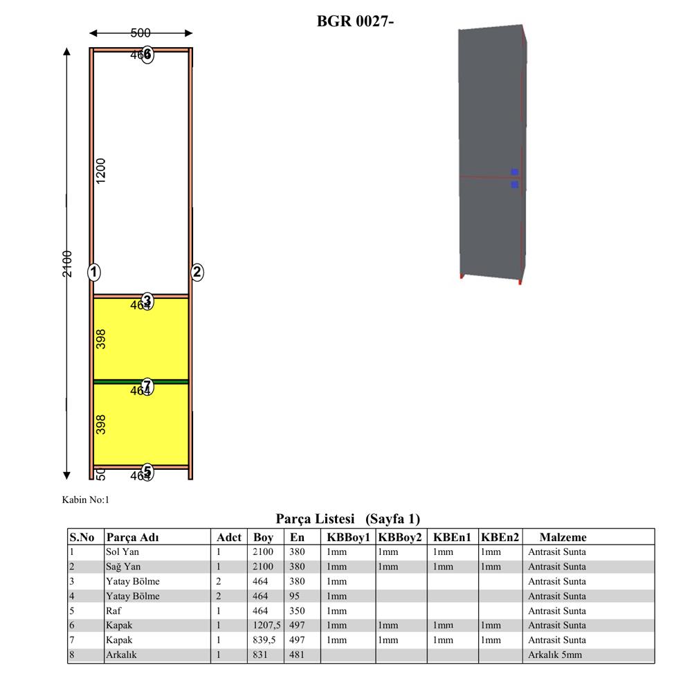 Malzeme: Dayanıklı melamin kaplı yonga levha