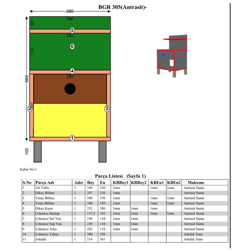 Bgr 305-B Çekmeceli Komodin Antrasit