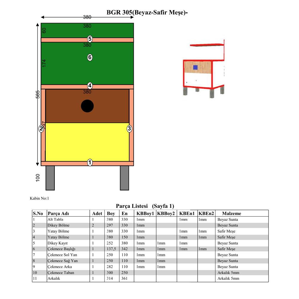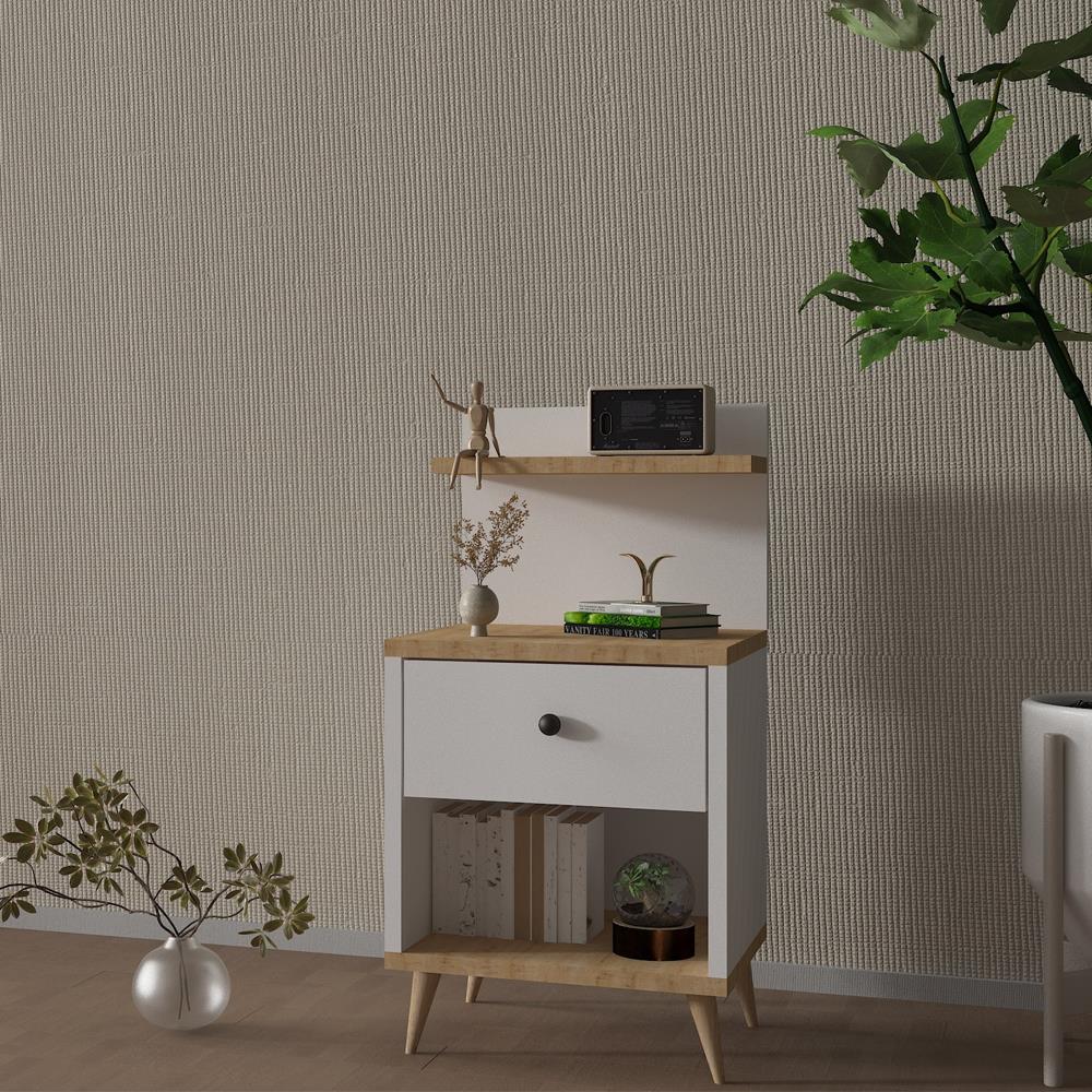 Bgr 305 Çekmeceli Komodin Beyaz-Meşe