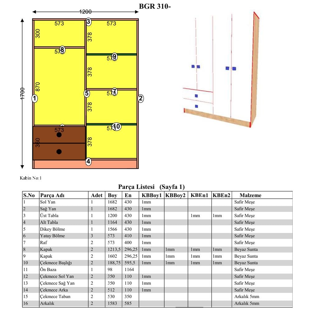 Malzeme: Yıldız Entegre 18 mm yonga levha
