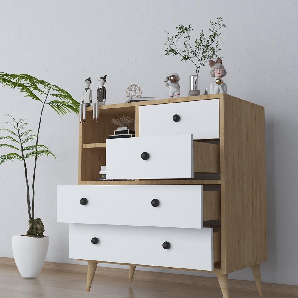 Bgr 320 4 Çekmeceli Raflı Şifonyer Beyaz-Meşe