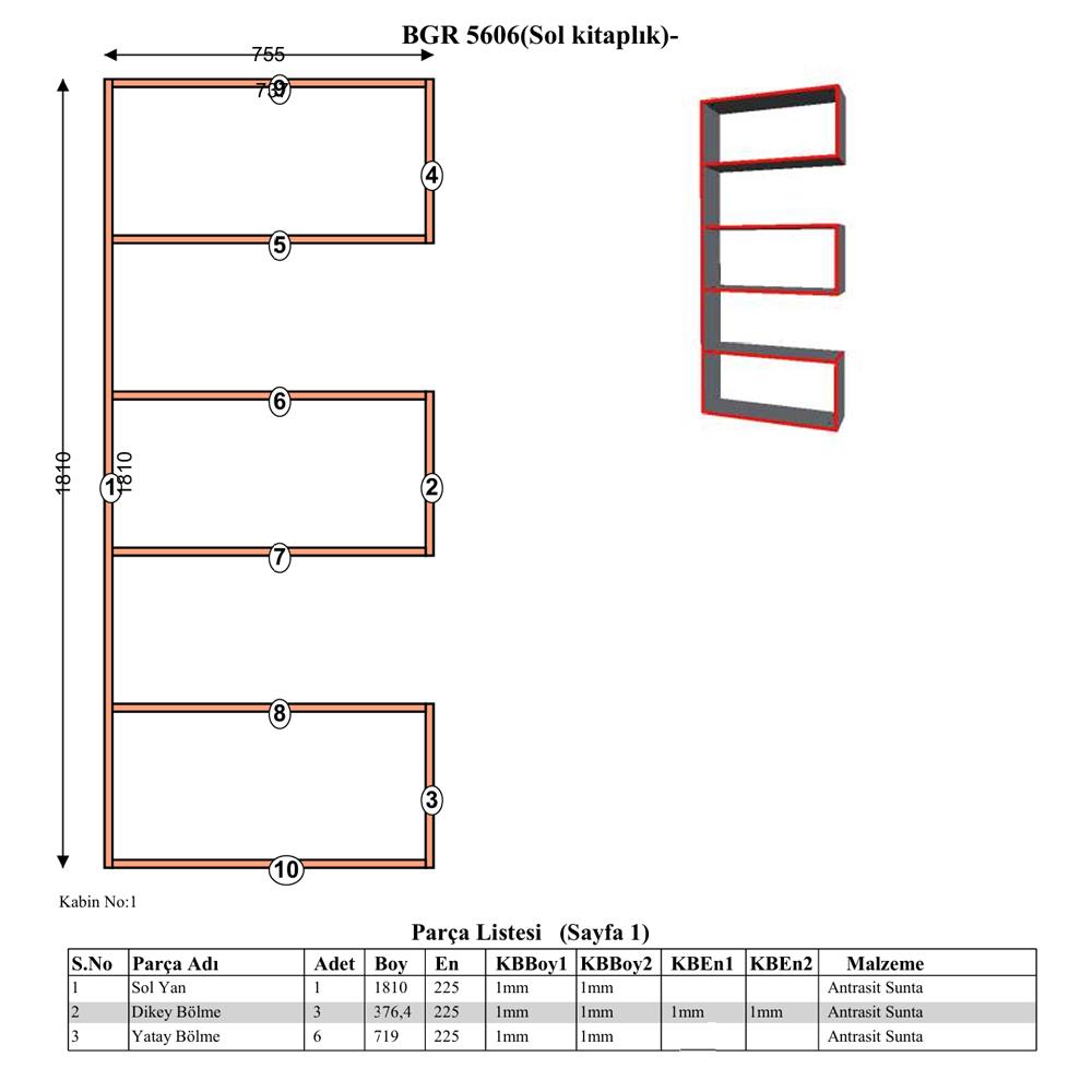 levha kullanılarak üretilmiştir. Dayanıklı yapısı ve modern antrasit rengi ile iç mekanınıza sofistike ve çağdaş bir atmosfer katmaktadır. 9 bölmeli modüler tasarımı, kitaplarınızı,