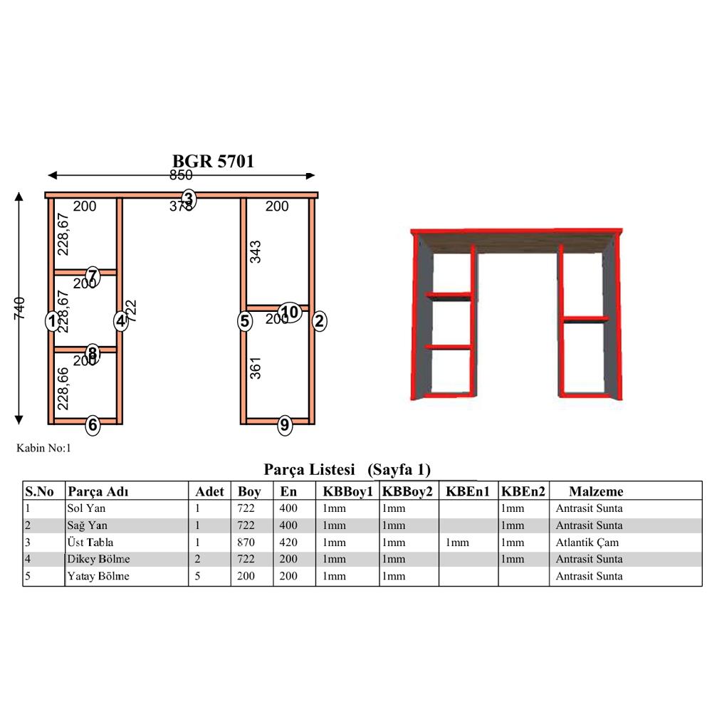 Antrasit ve çam renginin şık uyumunu bir araya getiren BGR 5701, hem dekoratif hem de işlevsel yapısıyla ev ve ofis ortamları için ideal bir çalışma masasıdır. Modern çizgilere