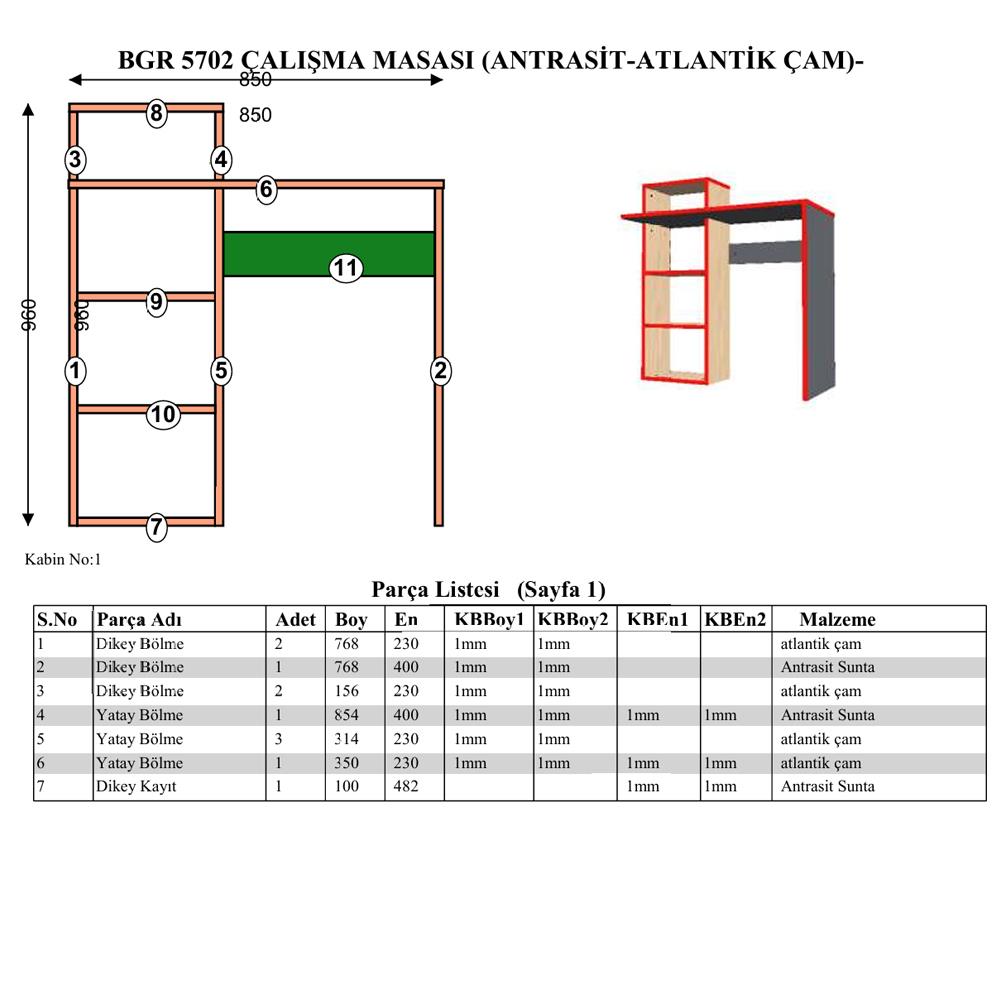 BGR 5702, hem estetik hem de işlevselliği bir arada sunan, modern yaşam alanları için özel olarak tasarlanmış bir çalışma masasıdır. Antrasit ve çam renklerinin dengeli