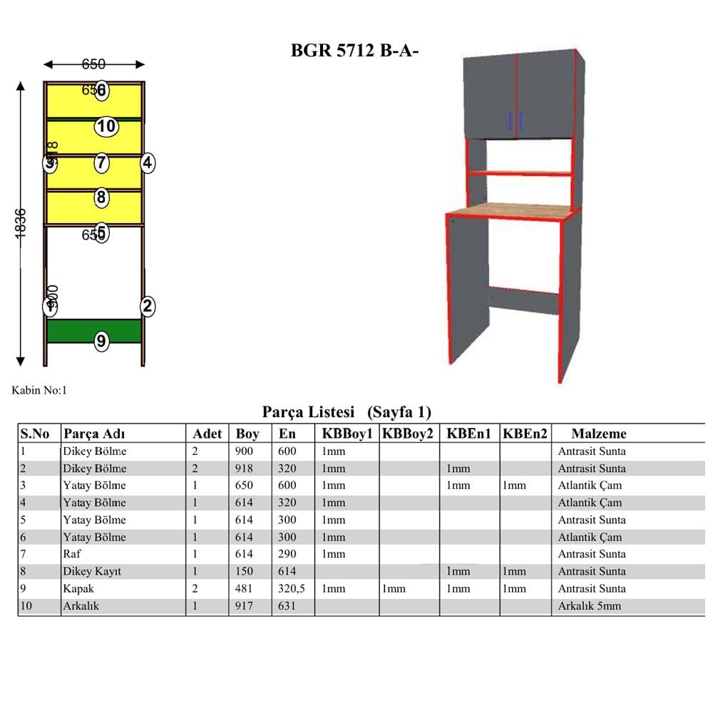 Entegre markasına ait 18 mm kalınlığında yonga kaplı levha kullanılarak üretilmiş olup, uzun ömürlü kullanım ve dayanıklılık sağlar. Antrasit rengi, şık ve sofistike bir görünüm