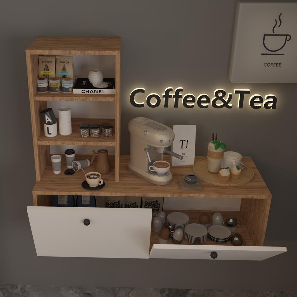 kaplamaz, alanı verimli şekilde kullanmanıza yardımcı olur. Kahve köşesi olarak kullanıma uygun olduğu gibi, çok amaçlı dolap olarak da tercih edilebilir.