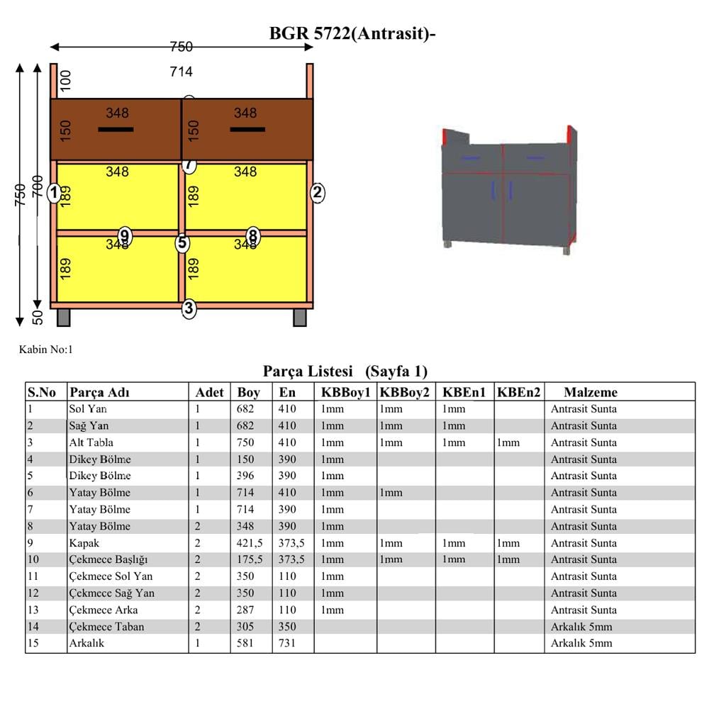 Malzeme: 18 mm kalınlığında yonga kaplı levha, Yıldız Entegre markasının yüksek kaliteli malzemesiyle üretilmiştir.