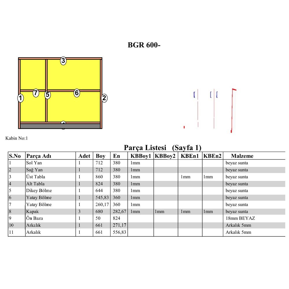 Malzeme: Beyaz melamin kaplı yonga levha