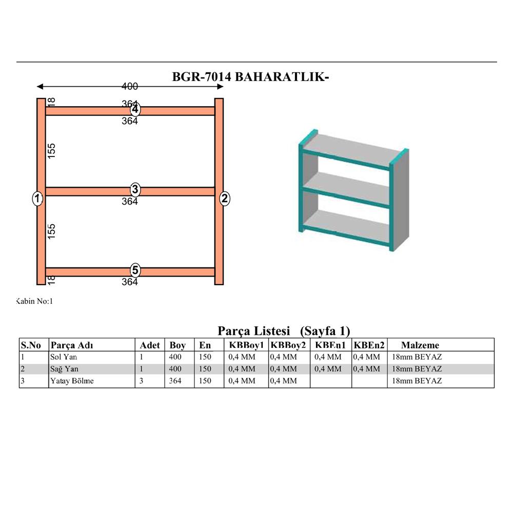 BGR 7014 modeli, mutfak düzenine şıklık ve pratiklik kazandırmak amacıyla tasarlanmış fonksiyonel bir baharatlıktır. Ürün, beyaz melamin kaplı yonga levhadan üretilmiştir.