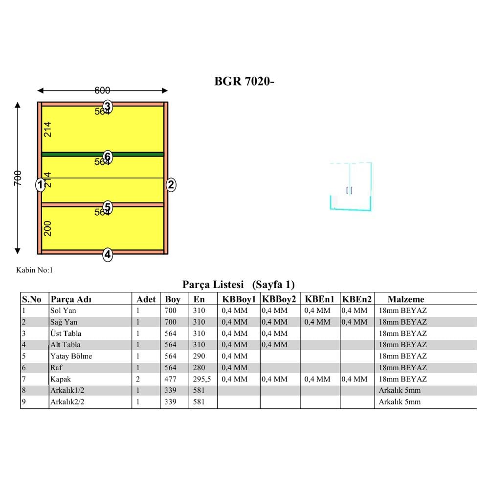 Bgr 7020 Modern Banyo Üst Modül, beyaz melamin kaplı yonga levhasıyla üretilmiş olup, banyonuzda modern ve düzenli bir görünüm sağlar. Kompakt tasarımı sayesinde dar