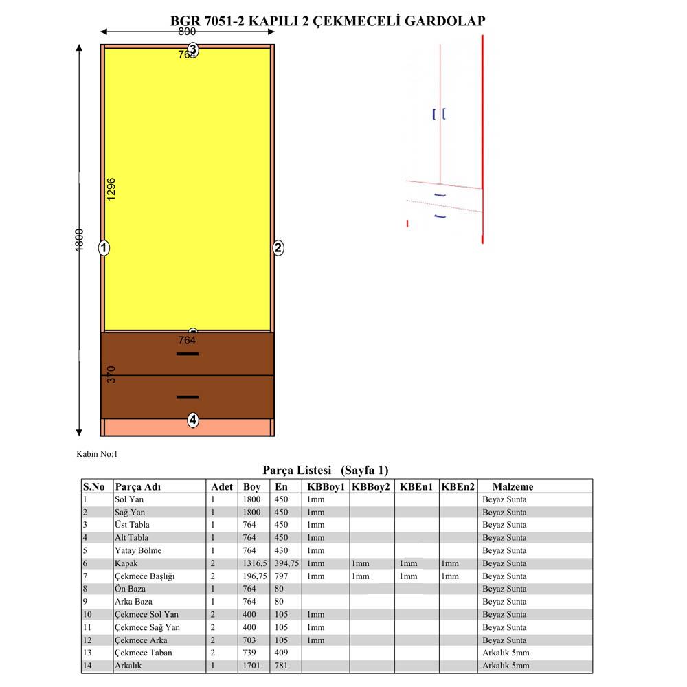 Bgr 7051 İki Kapaklı İki Çekmeceli Gardırop