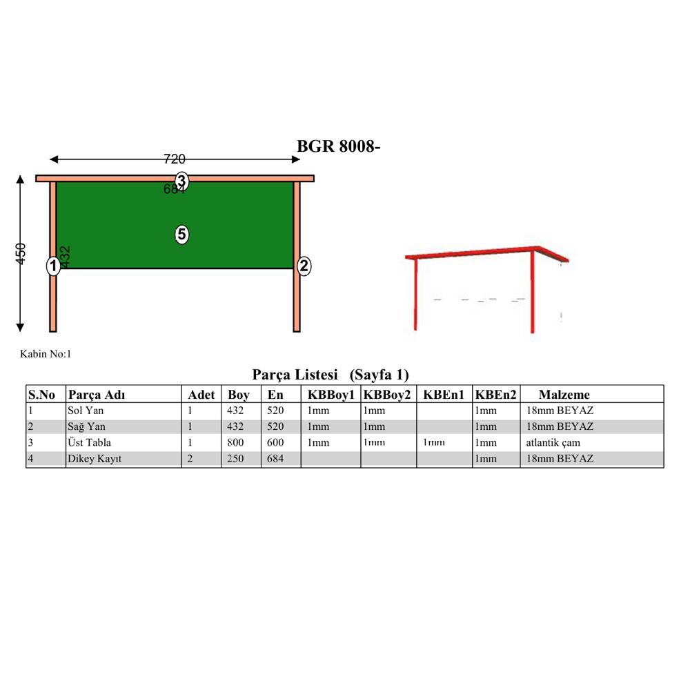 Üst tabla: Atlantik çam melamin kaplı yonga levha
