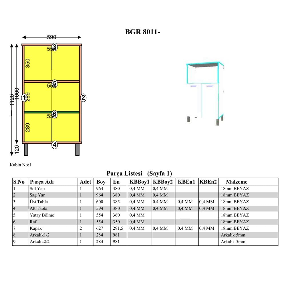 BGR 8011 mikrodalga dolabı, mutfakta düzeni sağlamak ve kullanım alanlarını verimli hale getirmek için tasarlanmış pratik bir mobilyadır. Beyaz melamin kaplı yonga levha