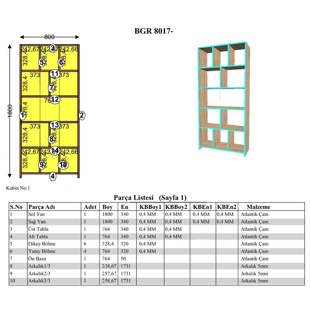 BGR 8017 kitaplık, doğal ahşap görünümünü modern çizgilerle buluşturan zarif bir depolama çözümüdür. Atlantik çam melamin kaplı yonga levha malzemesi, hem estetik bir