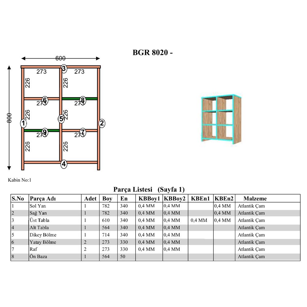 BGR 8020 kitaplık, doğal ahşap dokusunu modern çizgilerle bir araya getiren şık bir depolama çözümüdür. Atlantik çam desenli melamin kaplı yonga levha malzemeden üretilmiş