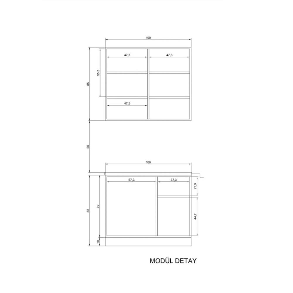 Bgr 8080 Beyaz Gövde Ahşap Detaylı Mutfak Dolabı Alt-Üst Modül