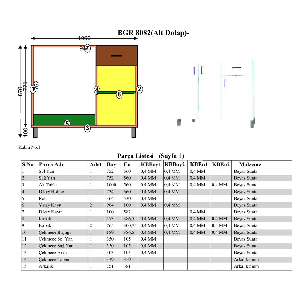Gövde malzemesi beyaz melamin kaplı yonga levhadan üretilmiştir.