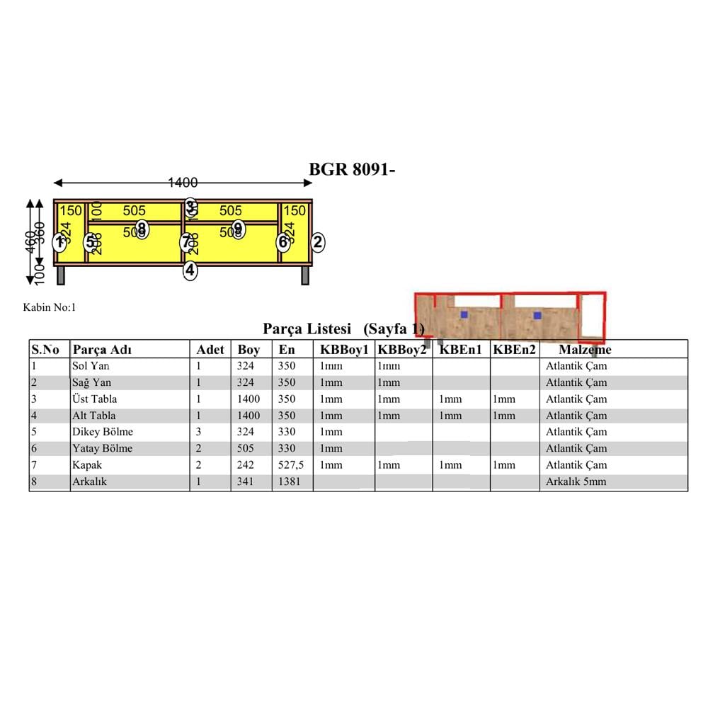 Kullanım Alanı: Salon, oturma odası, genç odası gibi alanlarda TV altlığı ve depolama ünitesi olarak kullanılabilir