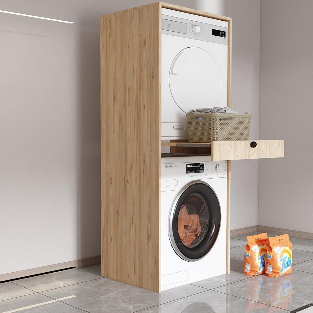 Banyonuzdaki çamaşır ve kurutma makinelerini yerleştirebileceğiniz geniş bir alan sunan bu dolap, modern ve estetik bir görünüm kazandırır. Ayrıca, çamaşır makinelerinizin
