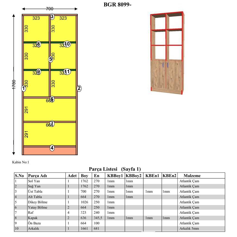 Bgr 8099 Dekoratif Kapaklı Raf Detaylı Kitaplık Çam