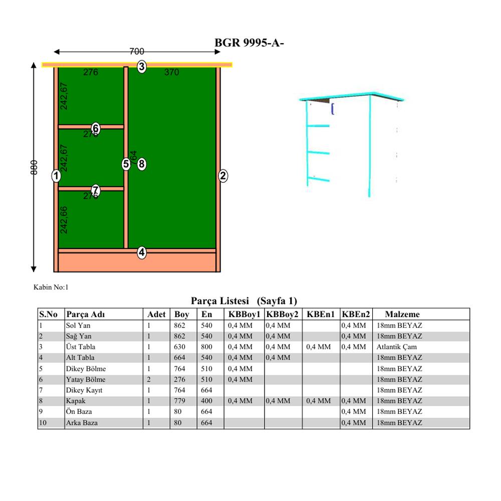 Beyaz melamin kaplı yonga levhadan üretilmiş olup, günlük kullanıma uygun dayanıklı bir yapıya sahiptir. Melamin kaplama yüzeyi sayesinde çizilmelere karşı dirençlidir ve nemli