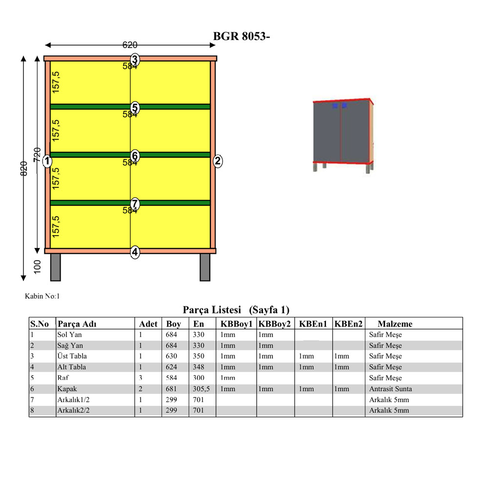 Ayakkabılık dolap, ayakkabıların düzenli, temiz ve erişilebilir biçimde saklanmasını sağlayan fonksiyonel bir mobilyadır. Bu model, aynı zamanda küçük ev eşyalarını, temizlik ürünlerini veya çantaları depolamak için de çok amaçlı dolap olarak kullanılabilir. Gövde ve kapaklarda kullanılan antrasit ayakkabılık rengi, modern ve şık bir görünüm sunarken, safir meşe dolap detayları doğal bir sıcaklık katar. Estetik görünümünün yanı sıra kapaklı yapısı sayesinde içerikler göz önünde tutulmadan gizli şekilde saklanabilir.