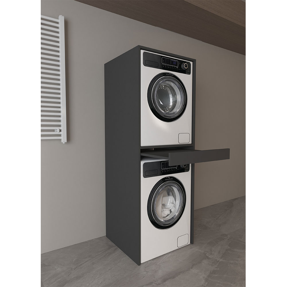 Çamaşır makinesi dolabı BGR 2000 modeli, 184,5 cm yüksekliği, 67 cm genişliği ve 60 cm derinliği ile hem çamaşır hem de kurutma makinesi için uygun, fonksiyonel bir saklama çözümüdür. Ürün, antrasit melamin kaplı yonga levha malzemeden üretilmiştir ve modern tasarımıyla dikkat çeker. Üst bölmesi deterjan, yumuşatıcı, temizlik ürünleri gibi eşyaları saklamak için idealdir. Alt bölmeye çamaşır veya kurutma makinesi kolaylıkla yerleştirilebilir.