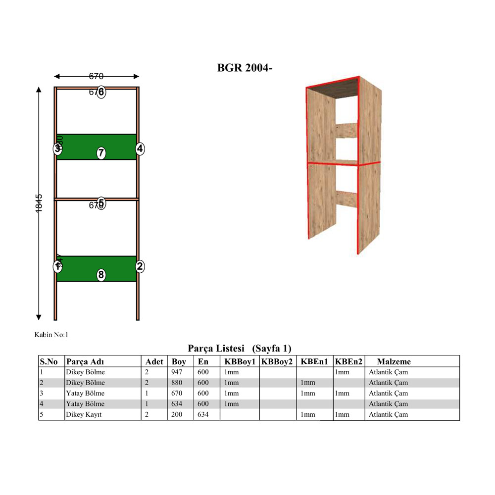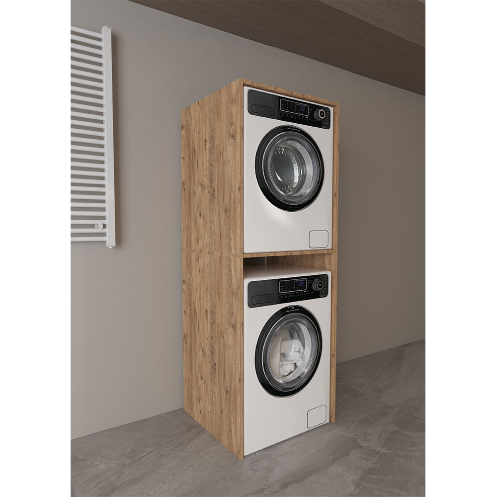 Çamaşır makinesi dolabı BGR 2004, 184,5 cm yüksekliği, 67 cm genişliği ve 60 cm derinliği ile hem çamaşır hem de kurutma makineleri için uygundur. Gövdesi safir meşe melamin kaplı yonga levha malzeme ile üretilmiştir. Alt bölümü makine yerleşimi için boş bırakılmıştır. Üst kısmındaki kapaklı raf bölmesi, deterjan, yumuşatıcı, temizlik ürünleri ve diğer malzemeler için ideal bir saklama alanı sunar.