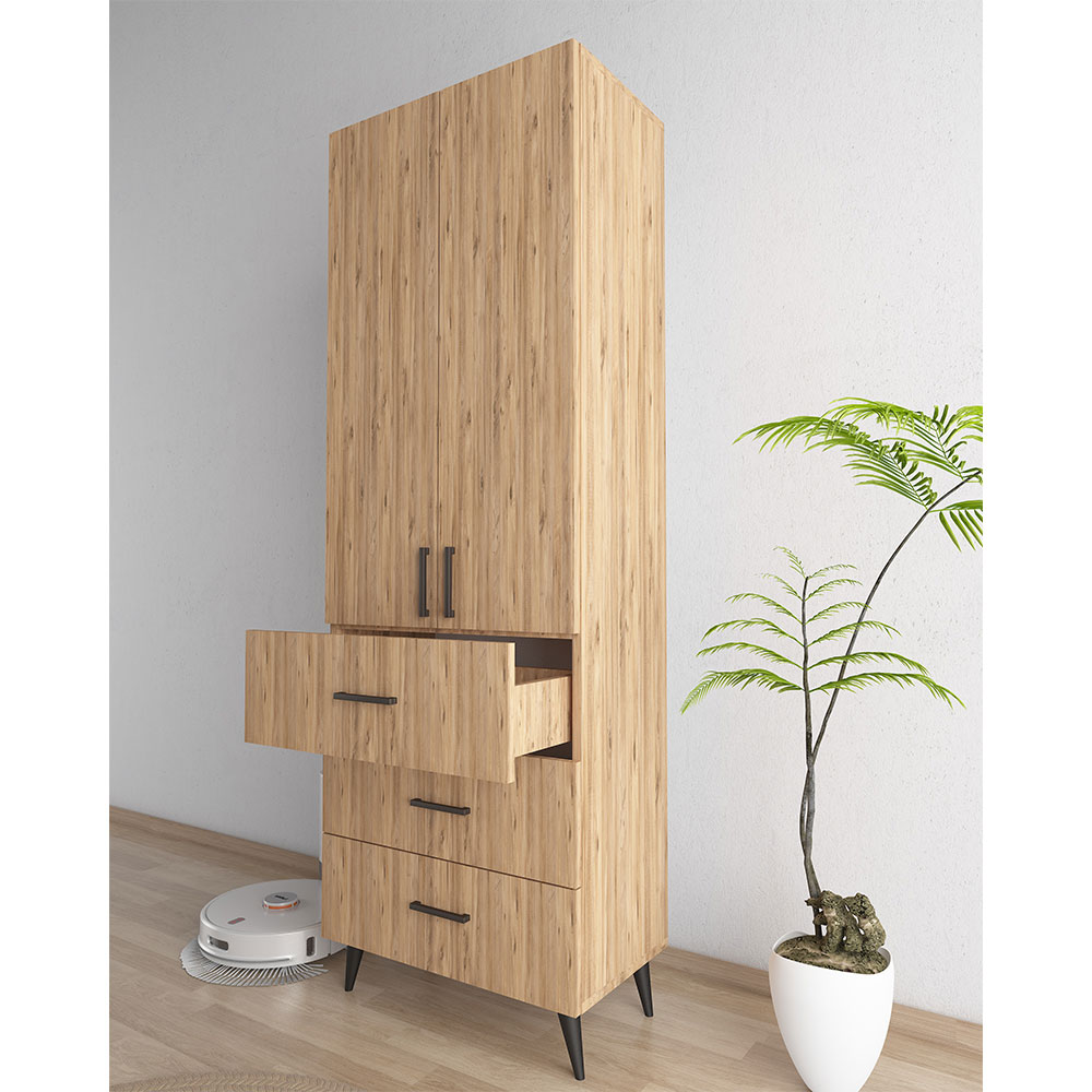 Çok amaçlı dolap BGR 1005; evin mutfak, banyo, yatak odası, antre veya ofis gibi birçok alanında kullanılabilir. Yüksek yapısı sayesinde yerden tasarruf sağlayarak daha fazla eşyanın tek bir alanda toplanmasına imkân tanır. Saklama kutuları, havlular, temizlik ürünleri, kitaplar veya mutfak gereçleri gibi pek çok farklı eşya için ideal raf ve hacim sunar. Ayrıca, sade ve doğal dış görünümü sayesinde her ortama uyum sağlayarak ortamın genel düzenini destekler.